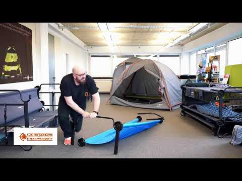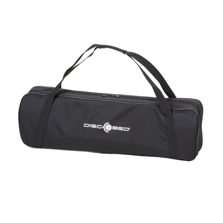 The Disc-O-Bed ONE L can hold up to 150 kg and fits in any car - perfect for a camping trip, festival visit or even as a guest bed. Its compact carry bag makes it easy to store in the closet or under the bed. Assembly is easy β no tools required! The sturdy mat ensures that your guest lies comfortably and can also easily be cleaned. The feet are removable from the frame, which enables the compact pack size.