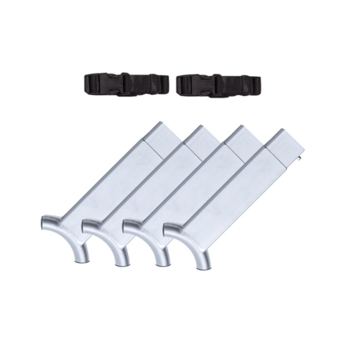 Die Stapeladapter lassen sich einfach an den Beinen mit geradem Rahmen anbringen und ermöglichen das sichere Aufsetzen des oberen Betts auf das untere. Robuste Sicherheitsriemen sorgen für zusätzliche Stabilität und festen Halt.