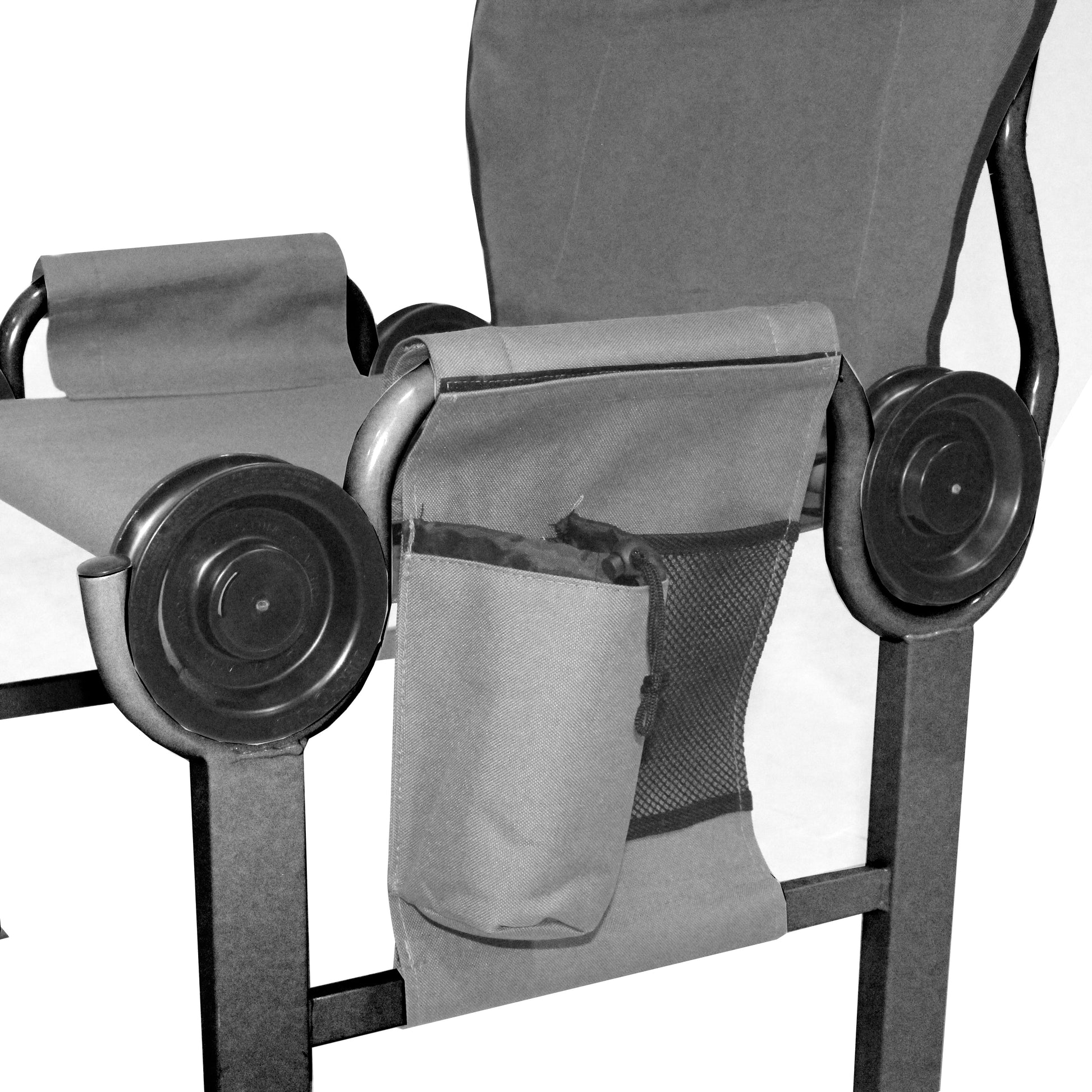 Die Sitzfläche ist schmutzabweisend und pflegeleicht und kann sogar leicht abgenommen und gereinigt werden.  Eine Tasche an der Rückenlehne sowie eine abnehmbare Seitentasche, um kleine Gegenstände zu verstauen, sind inklusive.